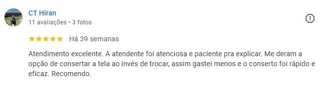 “A satisfação dos nossos clientes é o que nos motiva. Selecionamos abaixo alguns comentários reais do Google, mas você pode acessar o link e conferir muitas outras avaliações.”